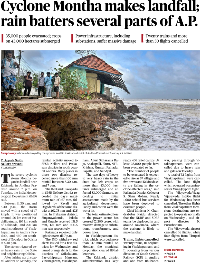 Examine the preparedness and response mechanisms implemented by the Indian government during Cyclone Montha. In light of the “zero-casualty” policy, evaluate the effectiveness of pre-landfall evacuation and inter-agency coordination. (15 Marks, 250 Words)